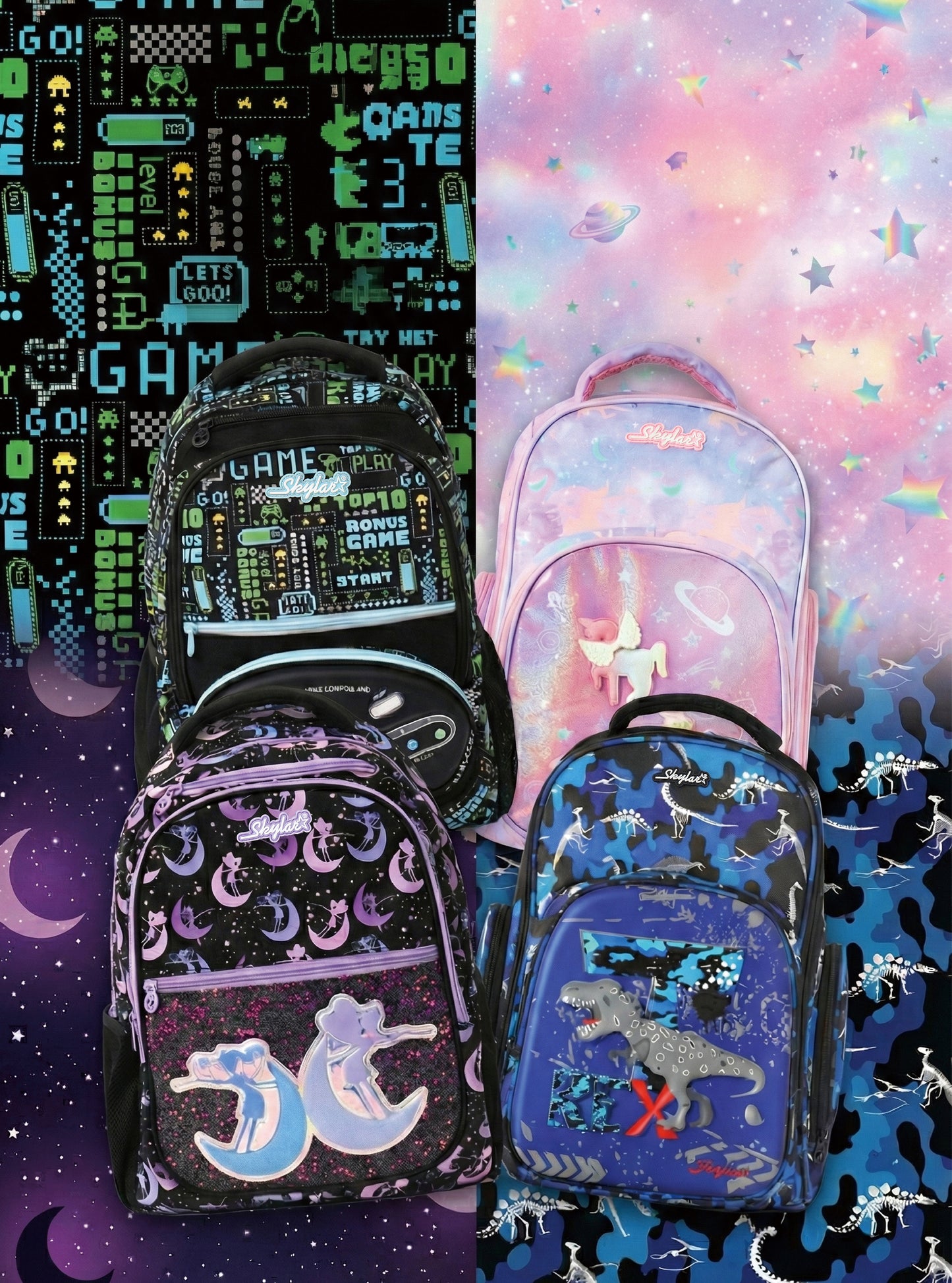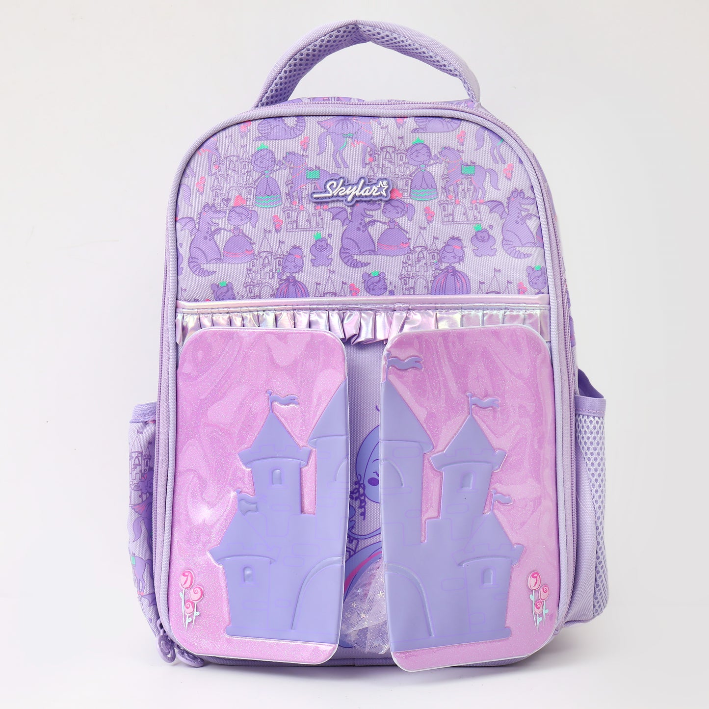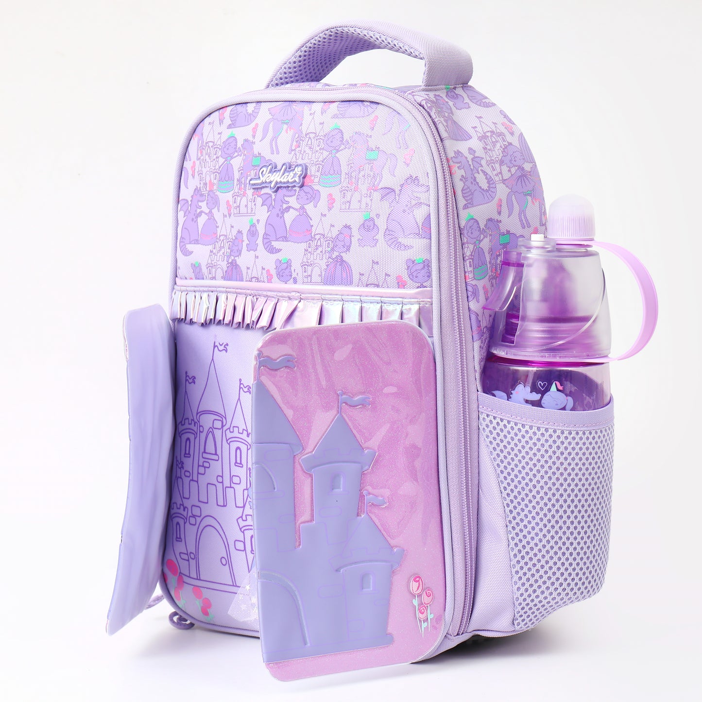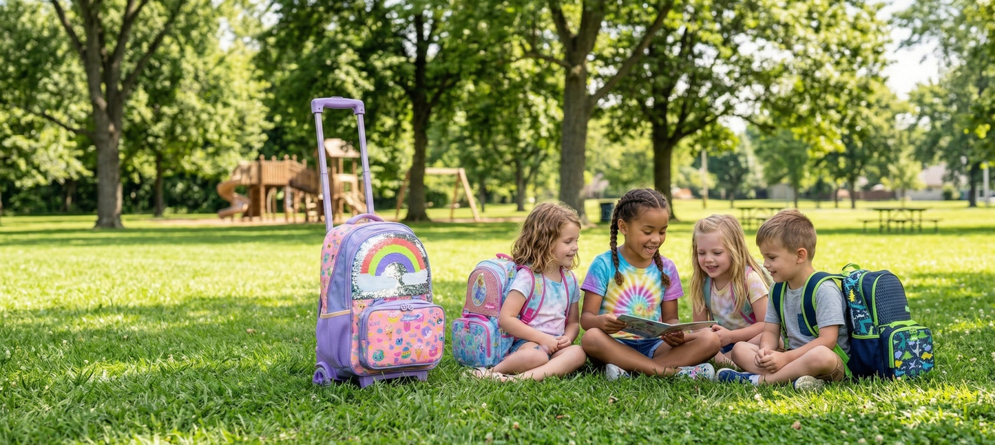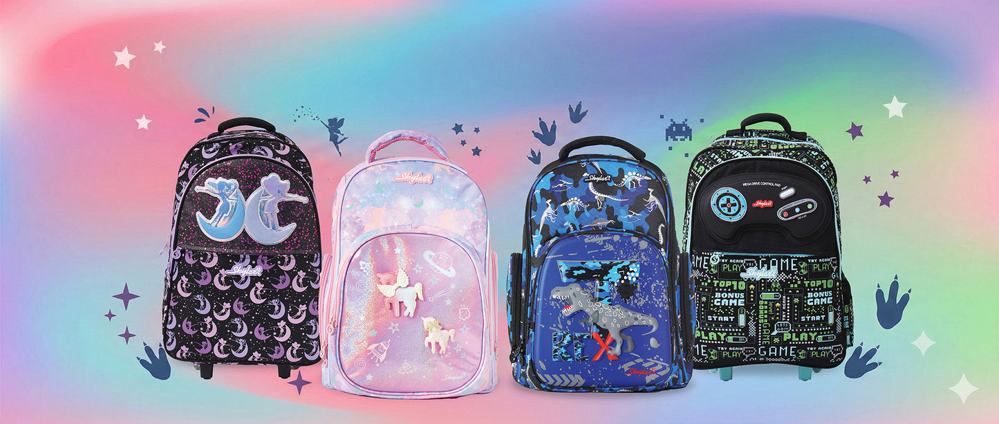 Make every school day a magical adventure with the Skylar Fairy-Wing Collection. Drenched in dreamy pinks and covered in whimsical garden fairies, this collection features our signature 3D Holographic Rainbow Wings that shimmer with every step. From rolling trolley bags with shaker pockets to misting water bottles, this set has everything your little one needs to sparkle, shine, and soar!
