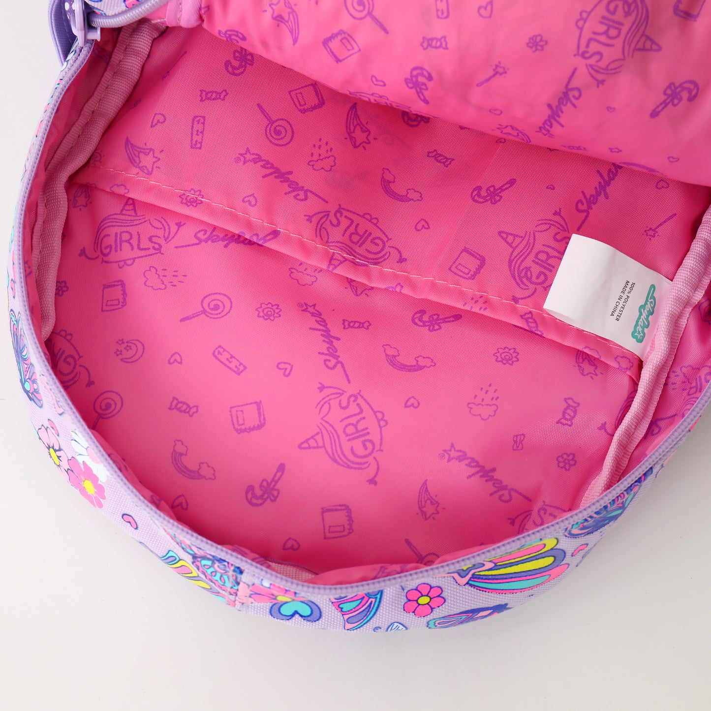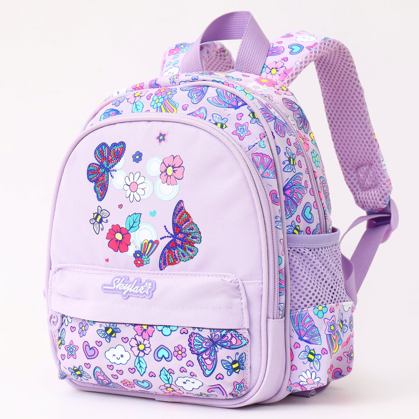 Let your little one carry joy, color, and imagination wherever they go with the Skylar Butterfly Garden Backpack. Designed in a dreamy lavender palette, this backpack features vibrant butterflies, cheerful flowers, and playful doodles—perfect for girls who love fun and colorful style.