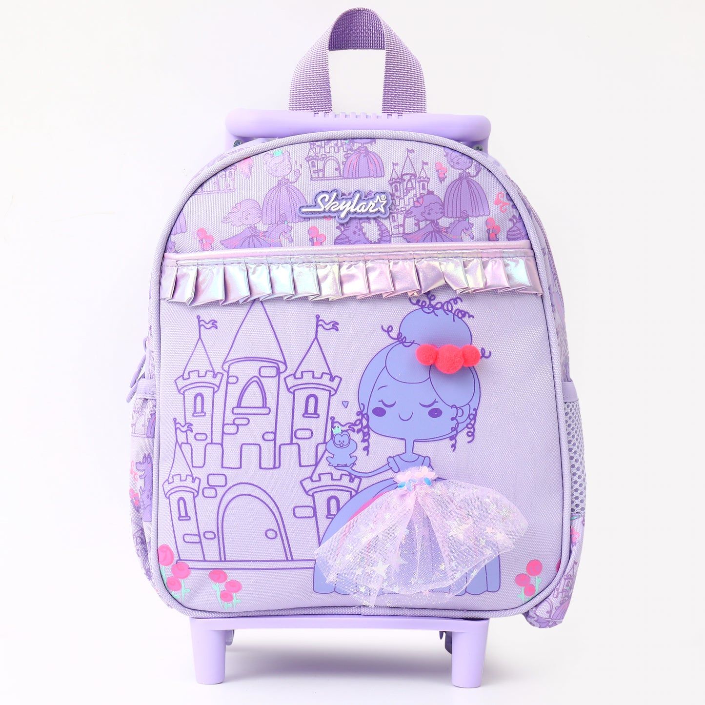 Let your little one shine like royalty with the Skylar Princess Trolley Backpack, designed in a soft lavender palette with sparkling details and adorable princess-themed artwork. Perfect for school, daycare, travel, and everyday adventures, this lovely trolley bag combines fairytale charm with everyday practicality.
