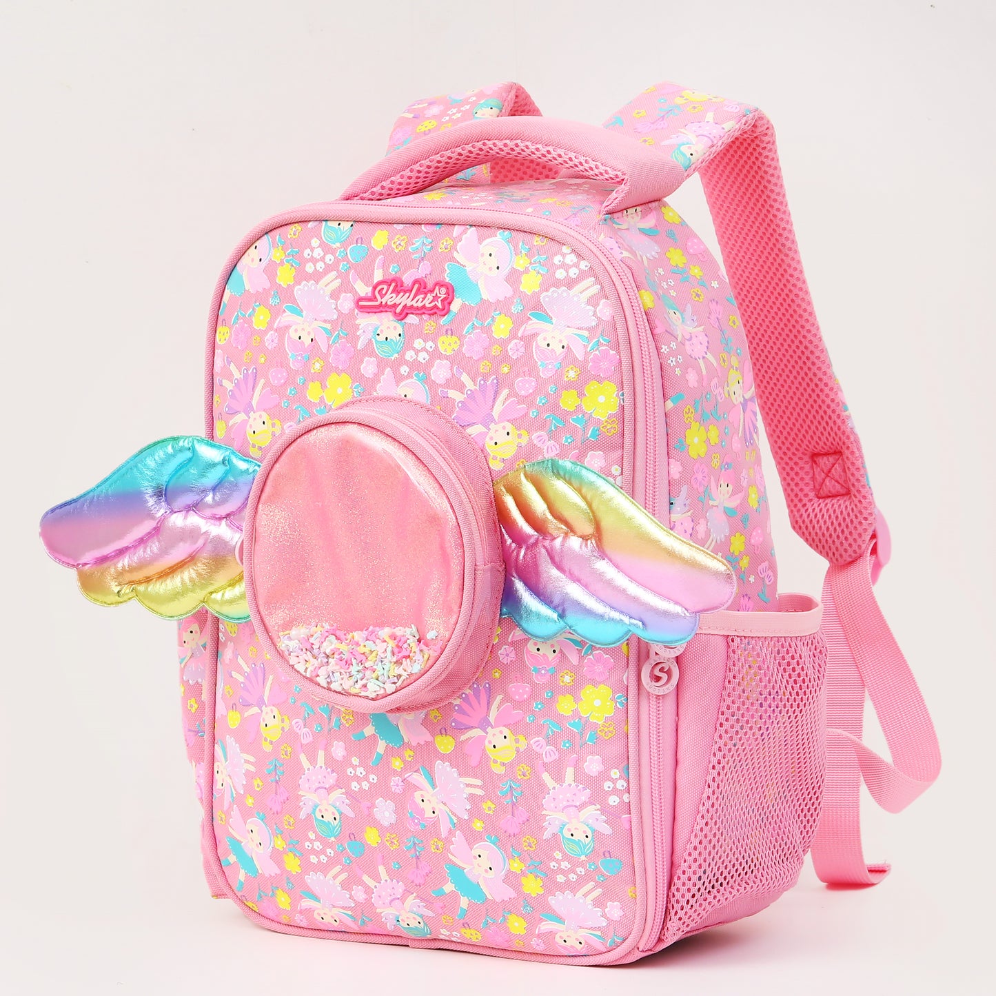 - Let your little one’s imagination take flight with the Skylar Fairy Wings Backpack, designed in a dreamy pink palette with adorable fairy and floral prints. Perfect for school, outings, and travel, this backpack brings fantasy and function together in the sweetest way.